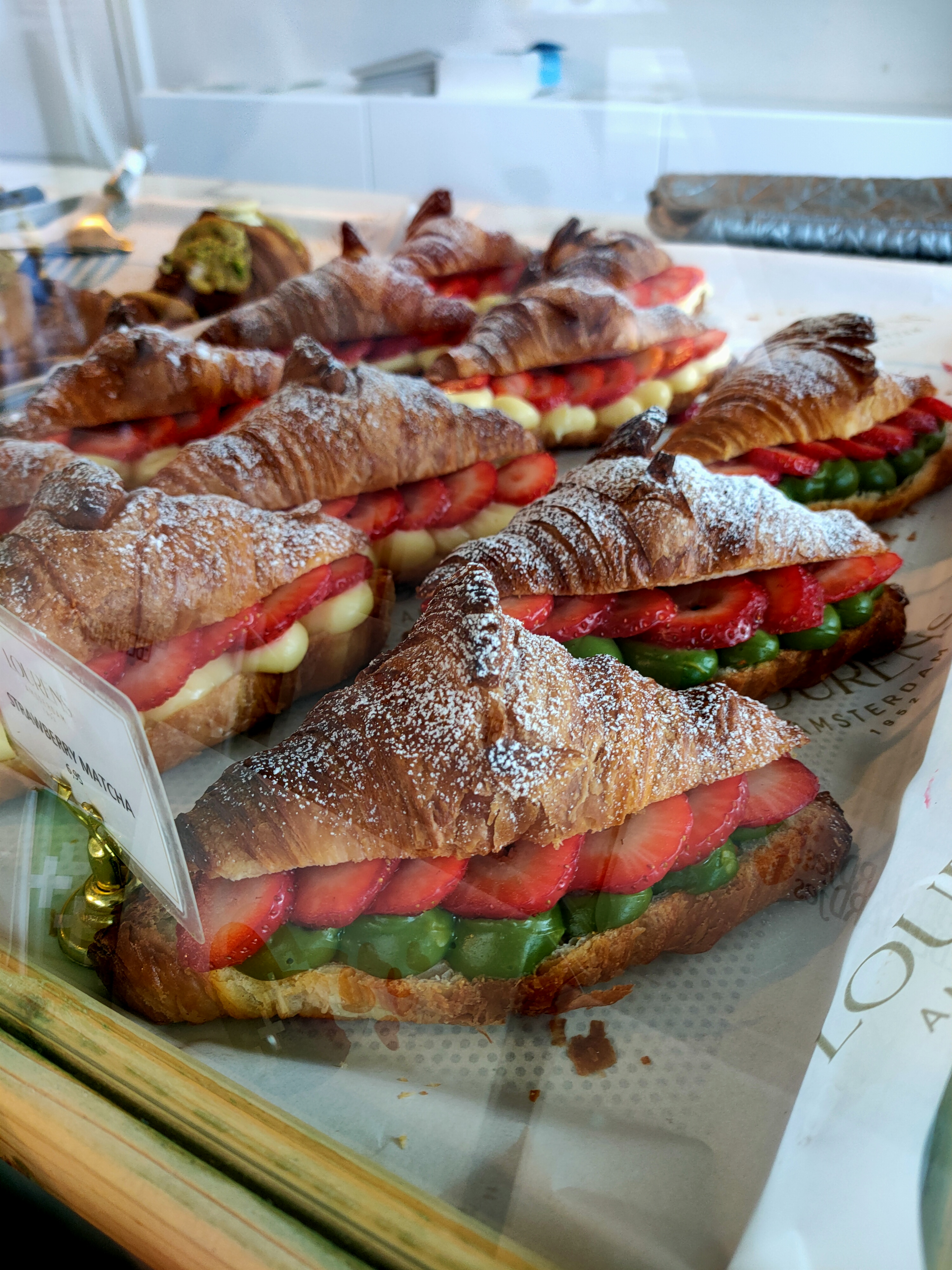 Buzzword pastry (delicious). Strawberry, matcha cream croissant