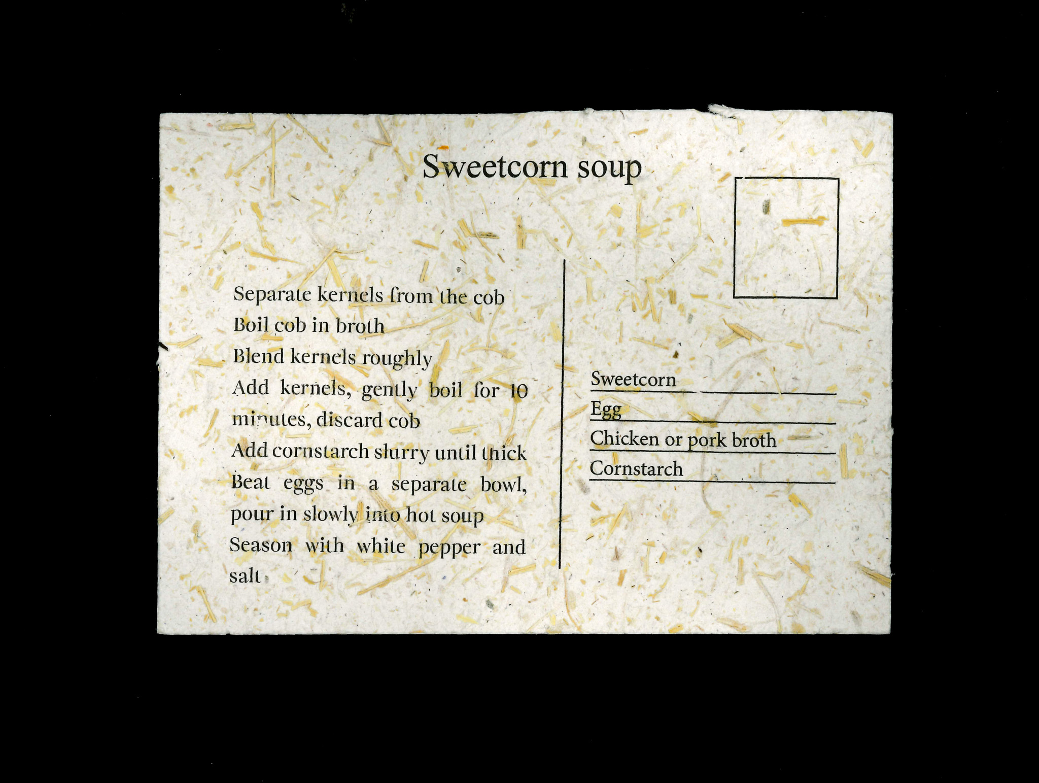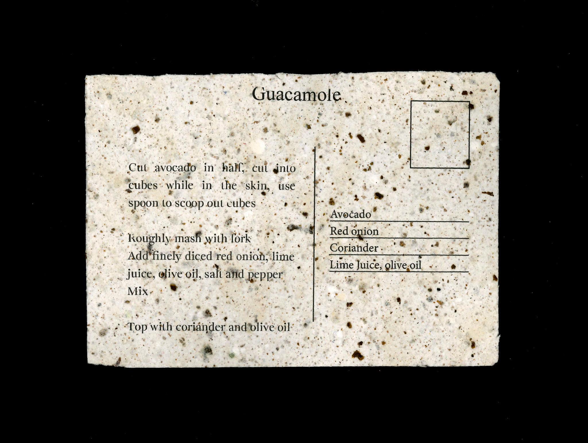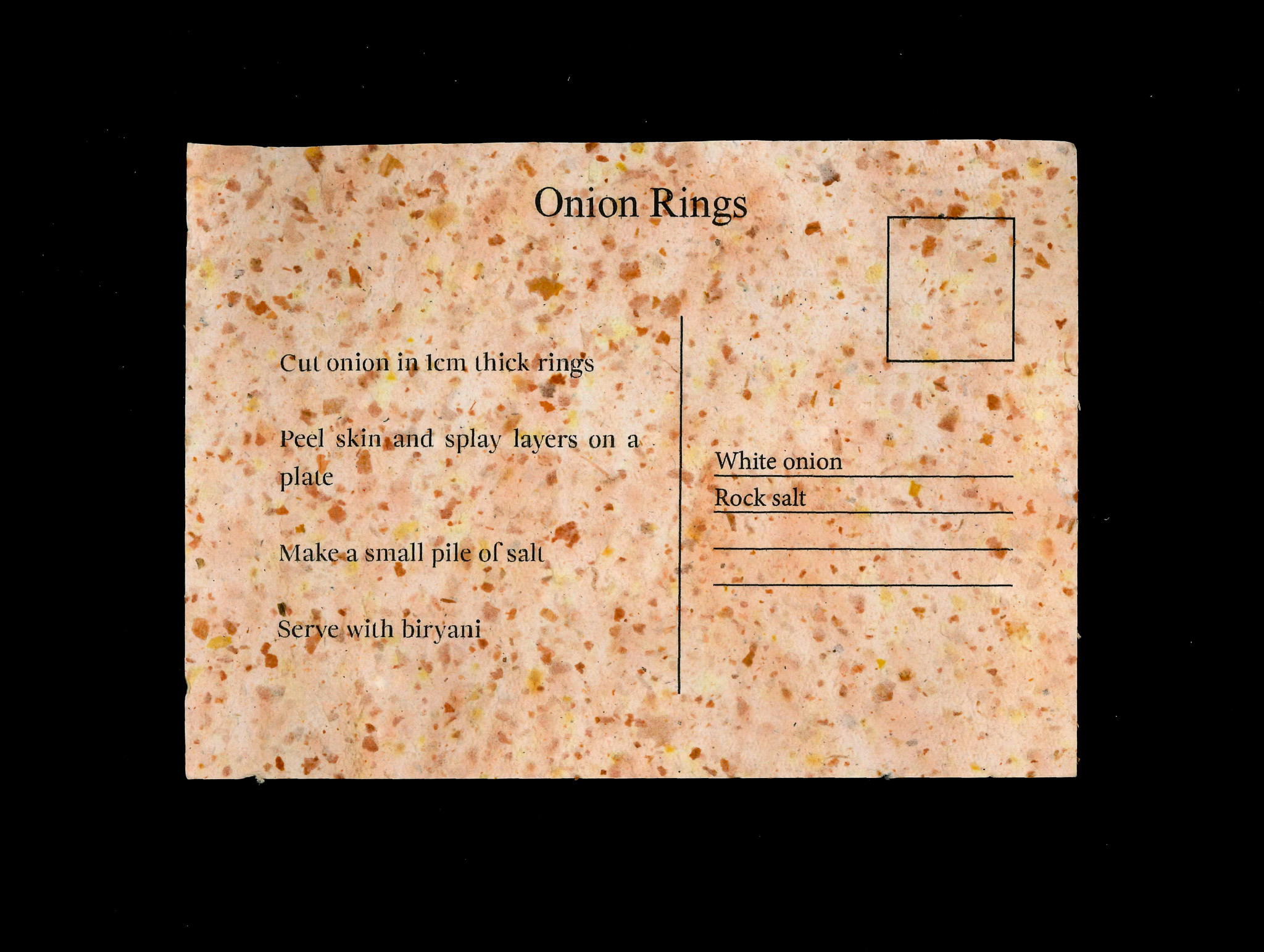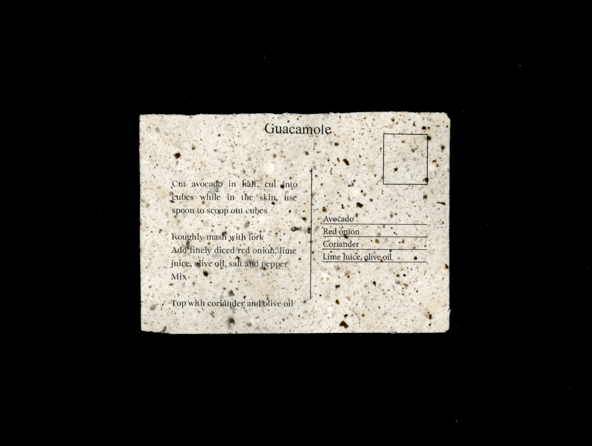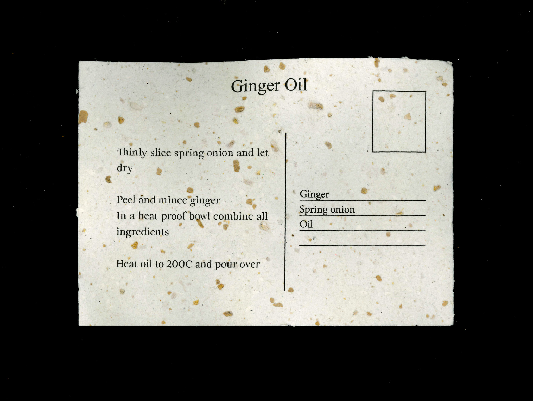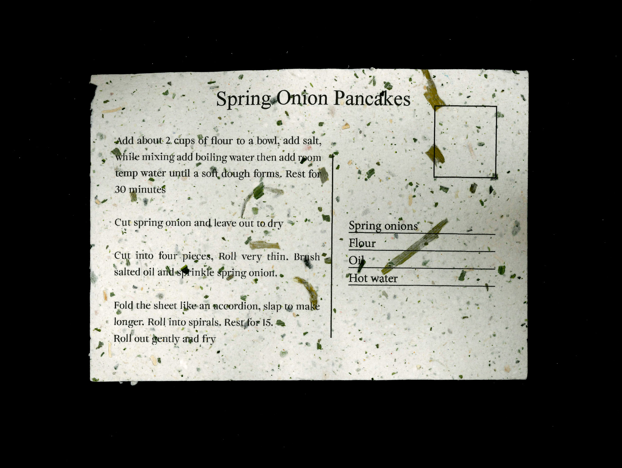 For when you can’t show someone how to make a dish where you must measure with your fingers and eyeball the sauces. Made with the main ingredient of each dish and a little love. These postcard recipes were created using the food waste from a summer of feasts, banquets, and gatherings.